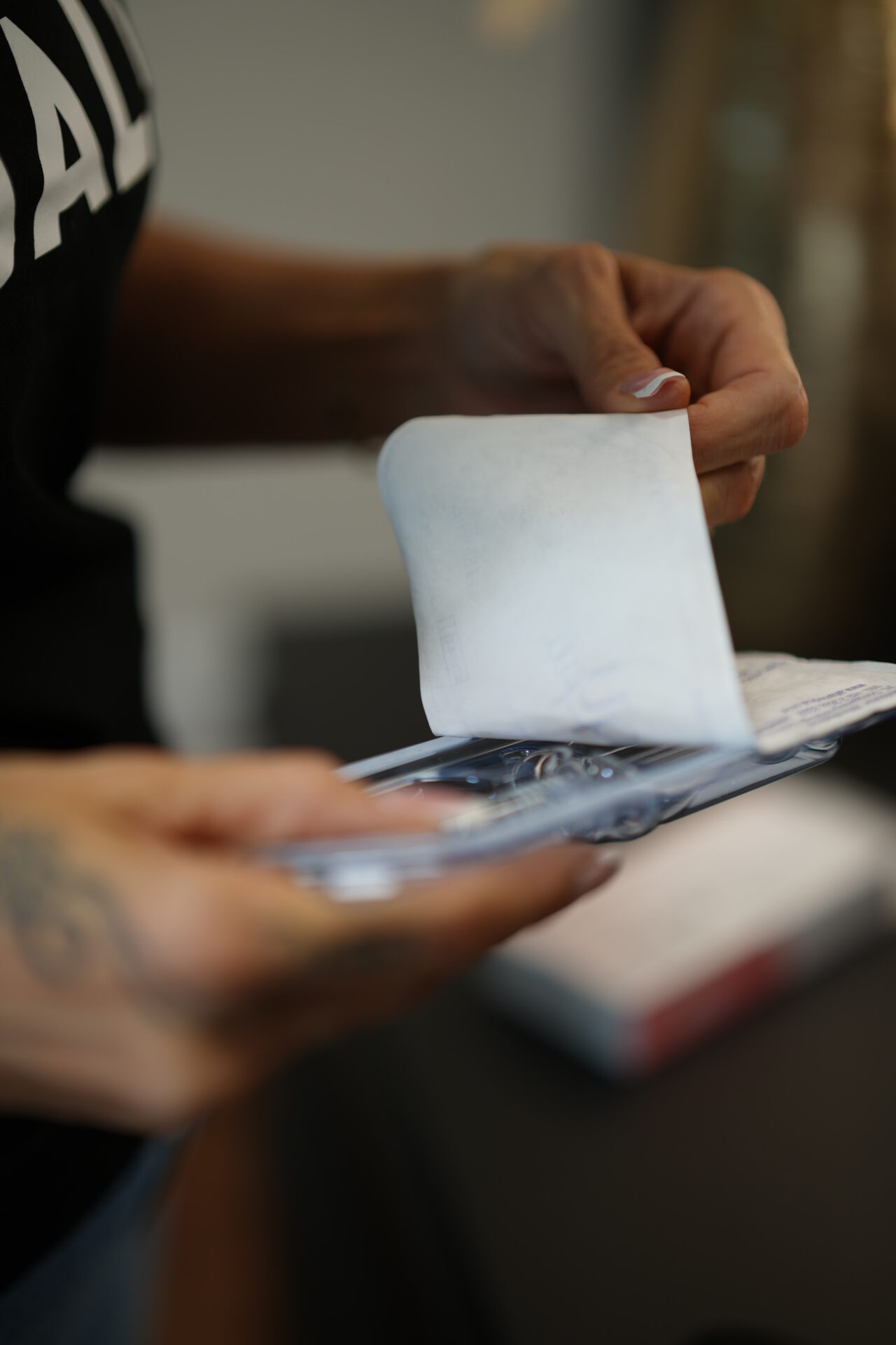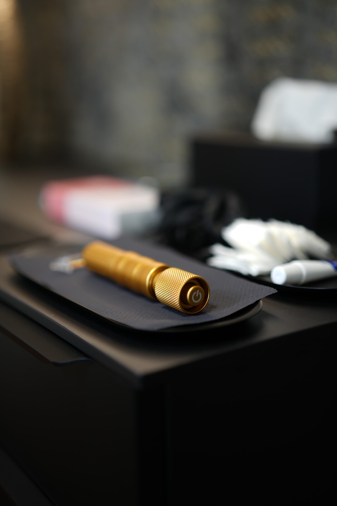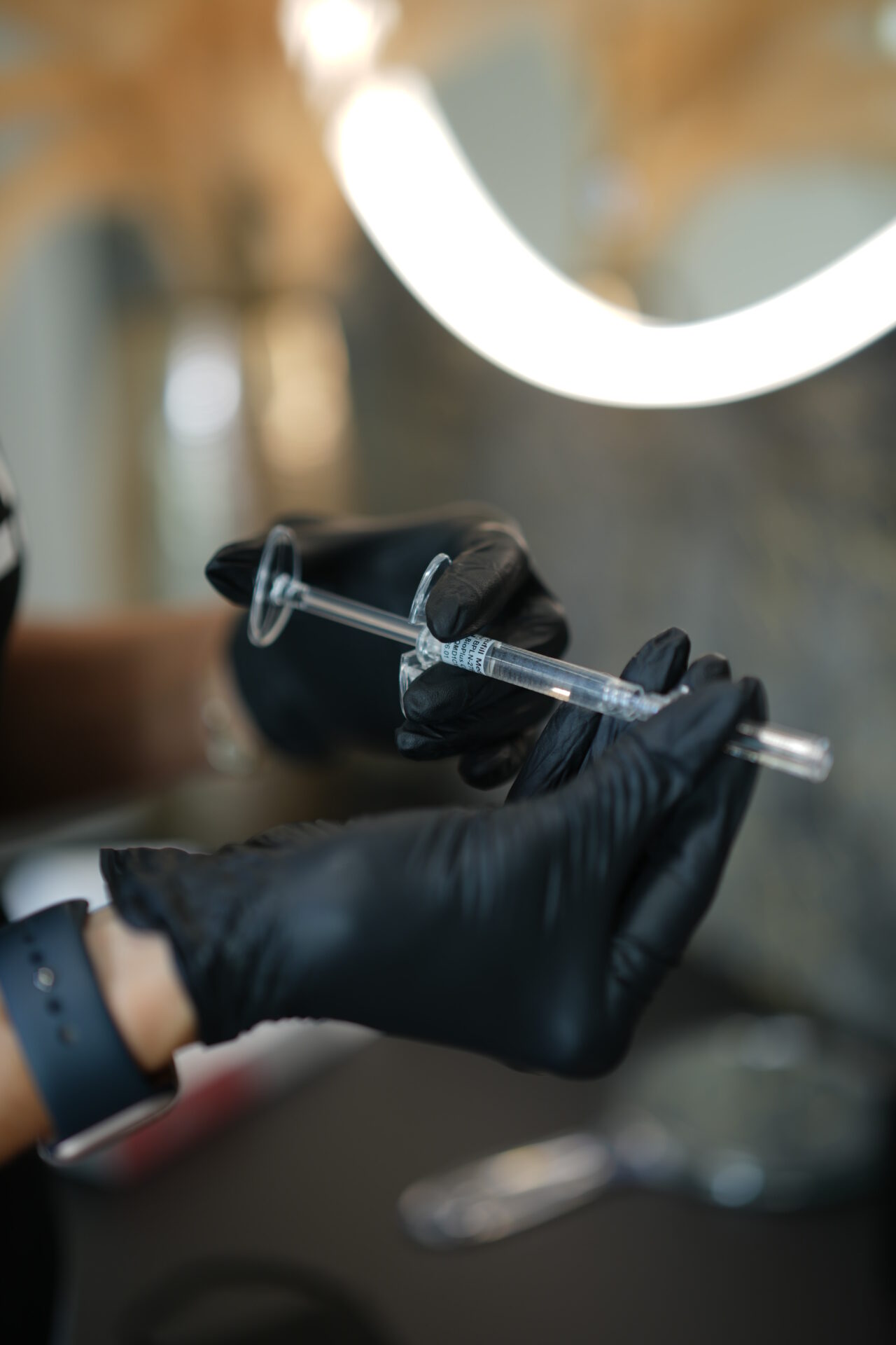 Ihre Kosmetikerin bereitet den Hyaluron Pen vor, indem sie die richtige Dosis und den erforderlichen Druck einstellt. Dies variiert je nach Behandlungsbereich und gewünschtem Ergebnis.